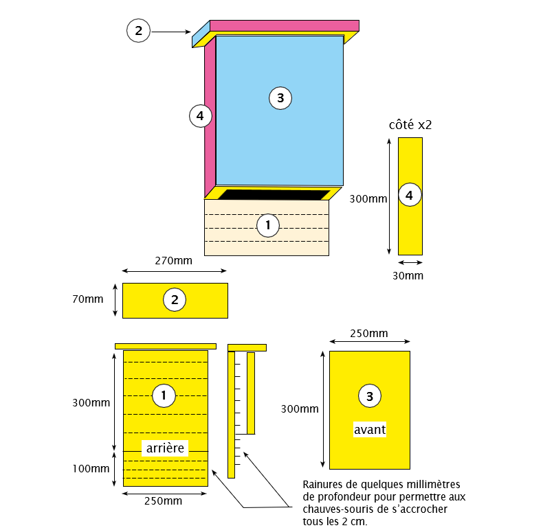 Exemple de plan pour la confection un gîte à chauve-souris